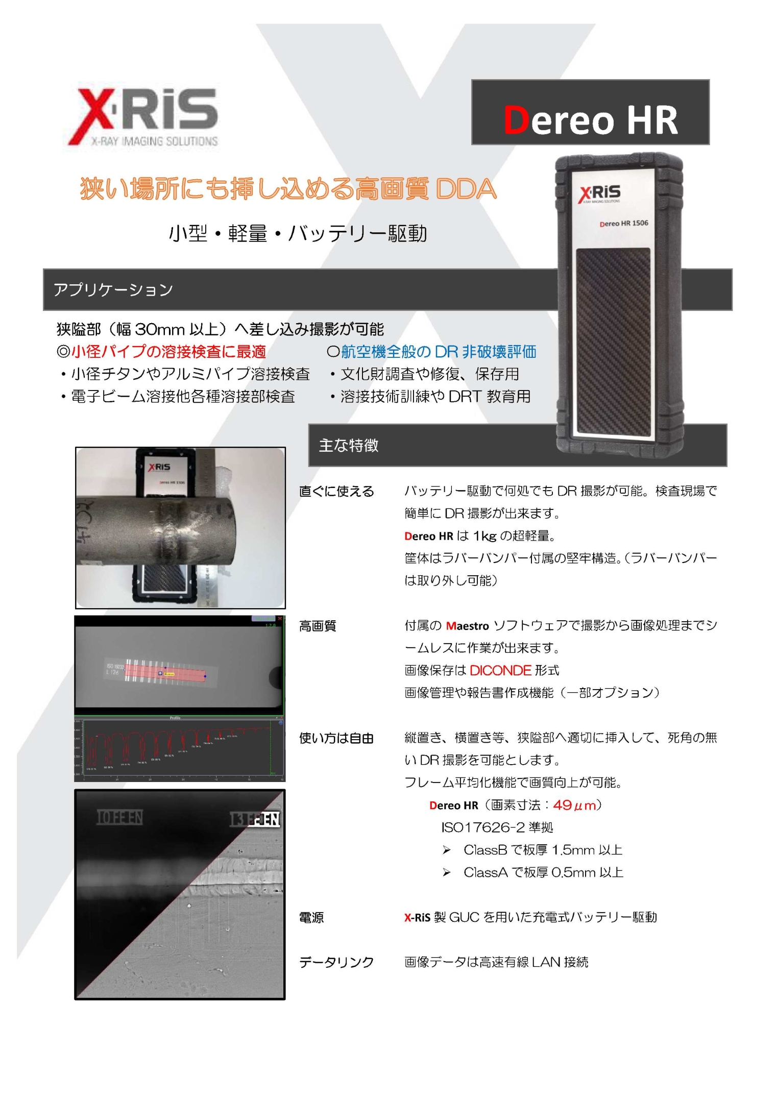 投稿日2025年07月08日 お知らせ デジタルRT(X-RAY IMAGING SOLUTIONS) X-RiS Dereo HRの導入弊社は、2025年 X-Rayのデジタル化に対応するため、小型・軽量で高画質なDDA、X-Ris社製 DereoHRを導入致しました。 従来のフィルム撮影のデジタル化による環境負荷の軽減を推進し、これからも社会貢献に努めてまいります。
