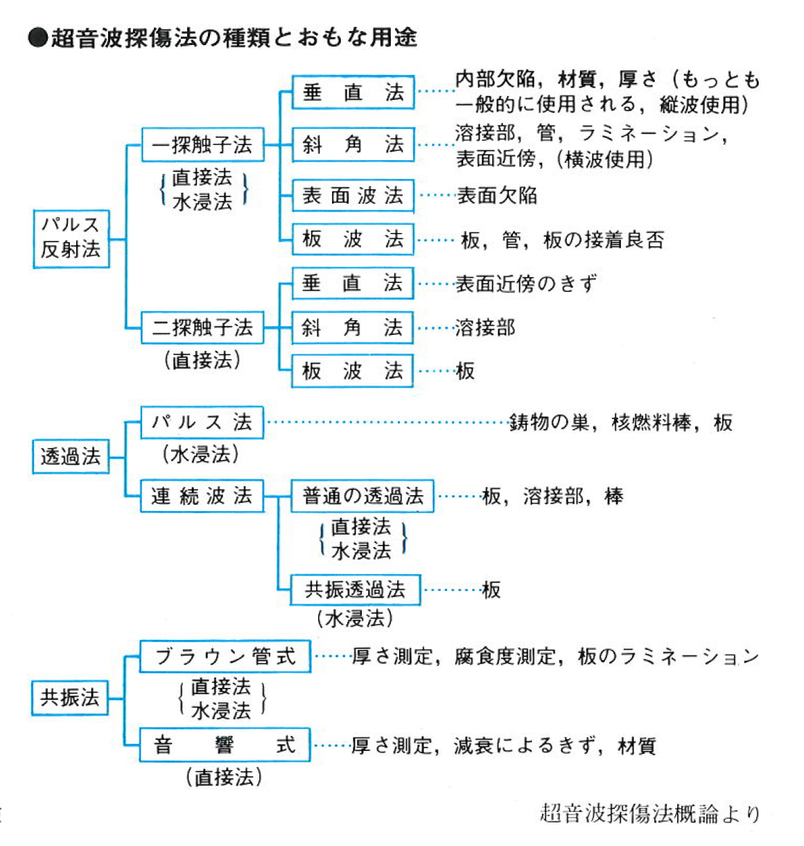 - 目視検査・放射線透過検査・超音波探傷検査・磁気探傷検査・浸透探傷検査・渦流探傷検査・ひずみ測定・漏れ試験・アコースティックエミッション(AE),赤外線検査法等